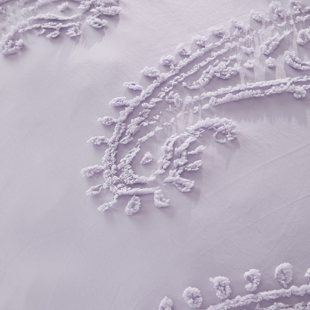 • Serene lavender purple brings a soft pop of colour to any space• Tufted paisley designs adorn this quilt cover with a unique elegance