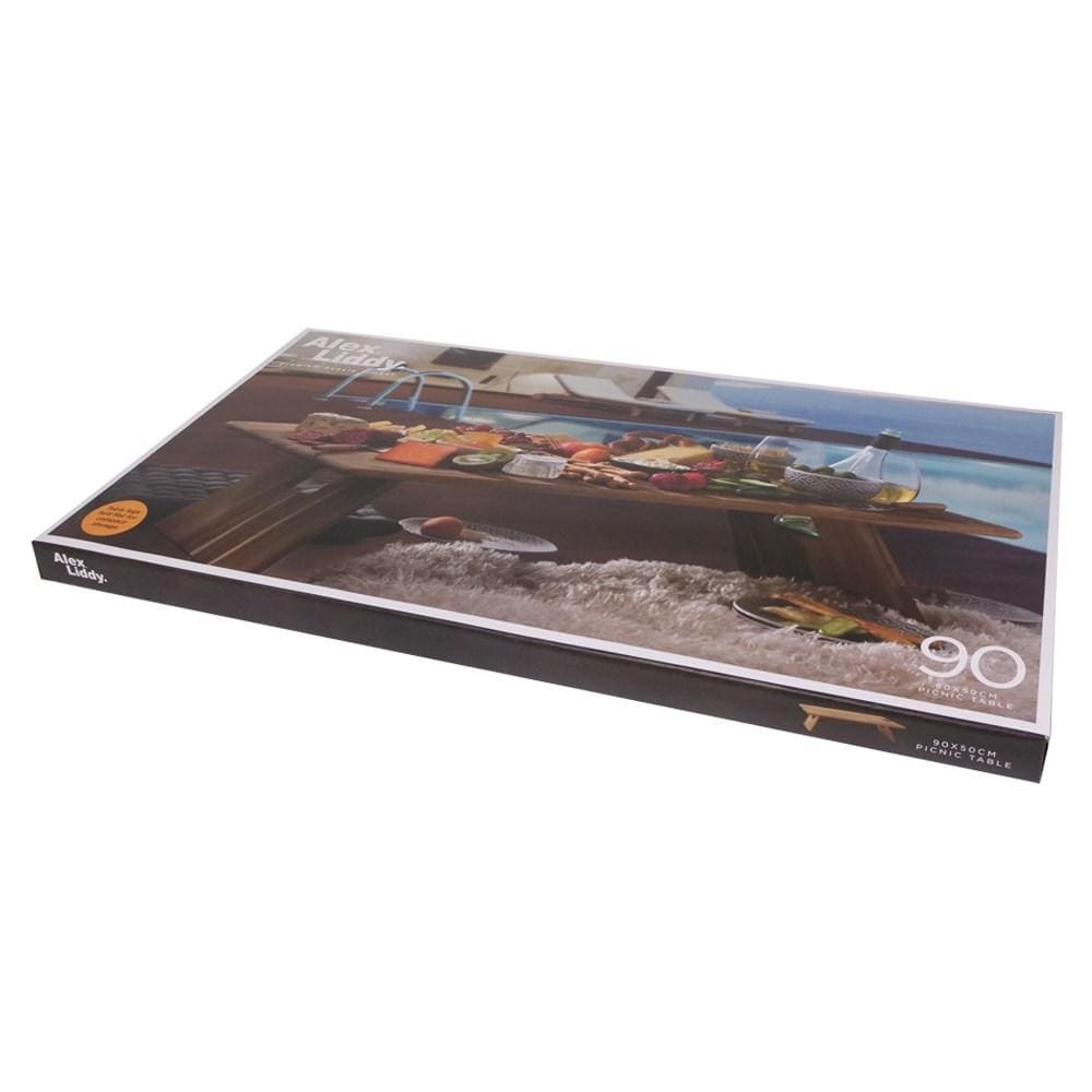 Soak up the sun with a bottle of wine, your closest friends and a grazing platter served on the Alex Liddy® Acacia Picnic Table. This stylish and convenient serving accessory is crafted from naturally sturdy acacia wood, making it a better alternative to harmful and flimsy plastics or heavy, clunky picnic gear. Lightweight and durable, the Alex Liddy® Acacia Picnic Table is the perfect serving piece. With its extra-large size, the Alex Liddy® Acacia Picnic Table is perfect for serving up bowls and plates of dip, cheeses, fruits, pickles and other bite-sized appetisers, plus it can securely hold a standard size wine bottle! Sturdy legs keep it secure while in use and fold flat for compact storage, making it easier to transport than standard alternatives. Easy to clean, the Alex Liddy® Acacia Picnic Table can simply be washed by hand. Packaged for gifting, the Alex Liddy® Acacia Picnic Table is an excellent gift for weddings, birthdays, and other events.