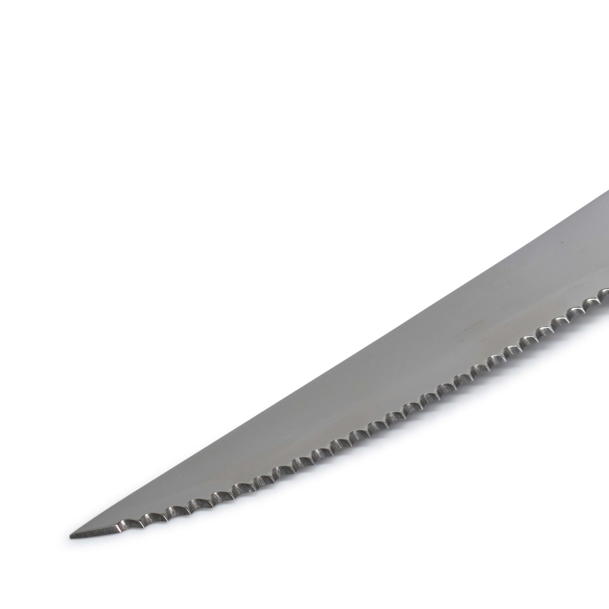 Who wants a sore arm after dinner? We sure don't! For the serious steak lovers - we've got your back. Designed to stand up to the toughest of meats so you can enjoy a well-done steak (without breaking into a sweat), our Industry steak knife set combines classic engineering with modern design to deliver a full gourmet experience. Crafted with stainless steel serrated blades designed to cut through meats without tearing, it allows for cleaner cuts without the discomfort of applying hard pressure onto your food. The sleek acacia wood handle offers a natural aesthetic and prefers to be wiped down with warm soapy water to retain its beauty. Built for those who love good old-fashioned meals, our set of six steak knives are also perfect for those who love to entertain - everyone gets to have a slice of the action!