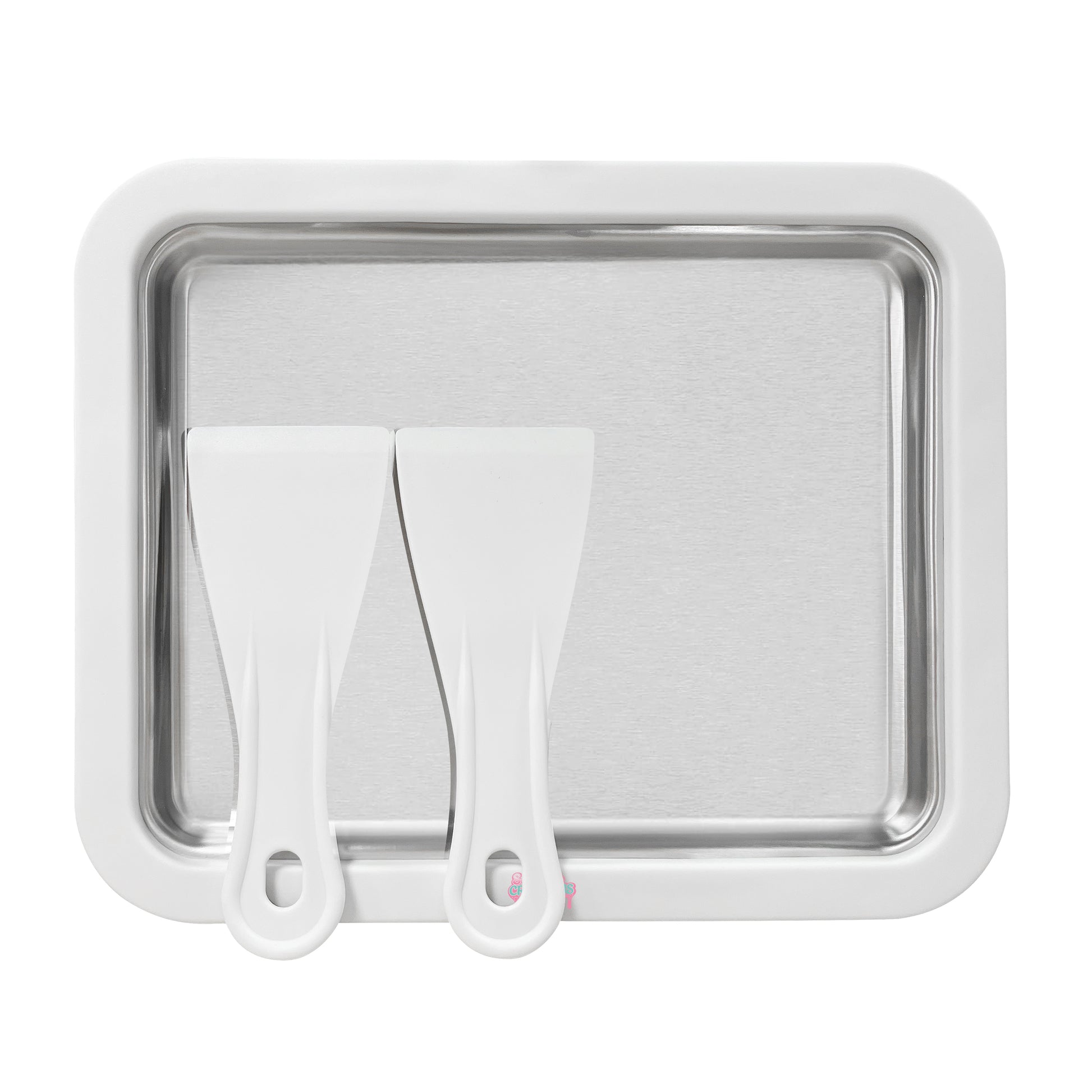 • This BPA-free ice cream maker features an odourless, tasteless, food-grade stainless steel tray, 2 mixing paddles, and a recipe and instruction booklet. There's no limit to your creativity