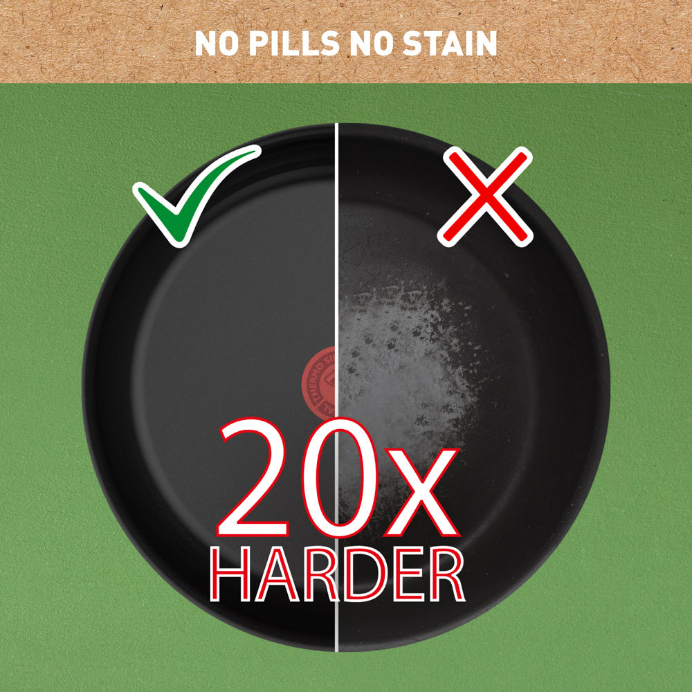 Eco-designed, with a reduced environmental footprint, Tefal's Renew Black range is the perfect addition to any eco-conscious kitchen. Discover effortless glide & healthy, low-fat cooking, with a new-generation non-stick ceramic coating that's made to last. Compatible with all cooktops, this cookware delivers perfect, delicious searing every time thanks to Thermo-Signal™ heat indicator technology.