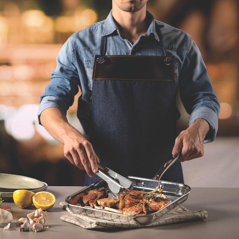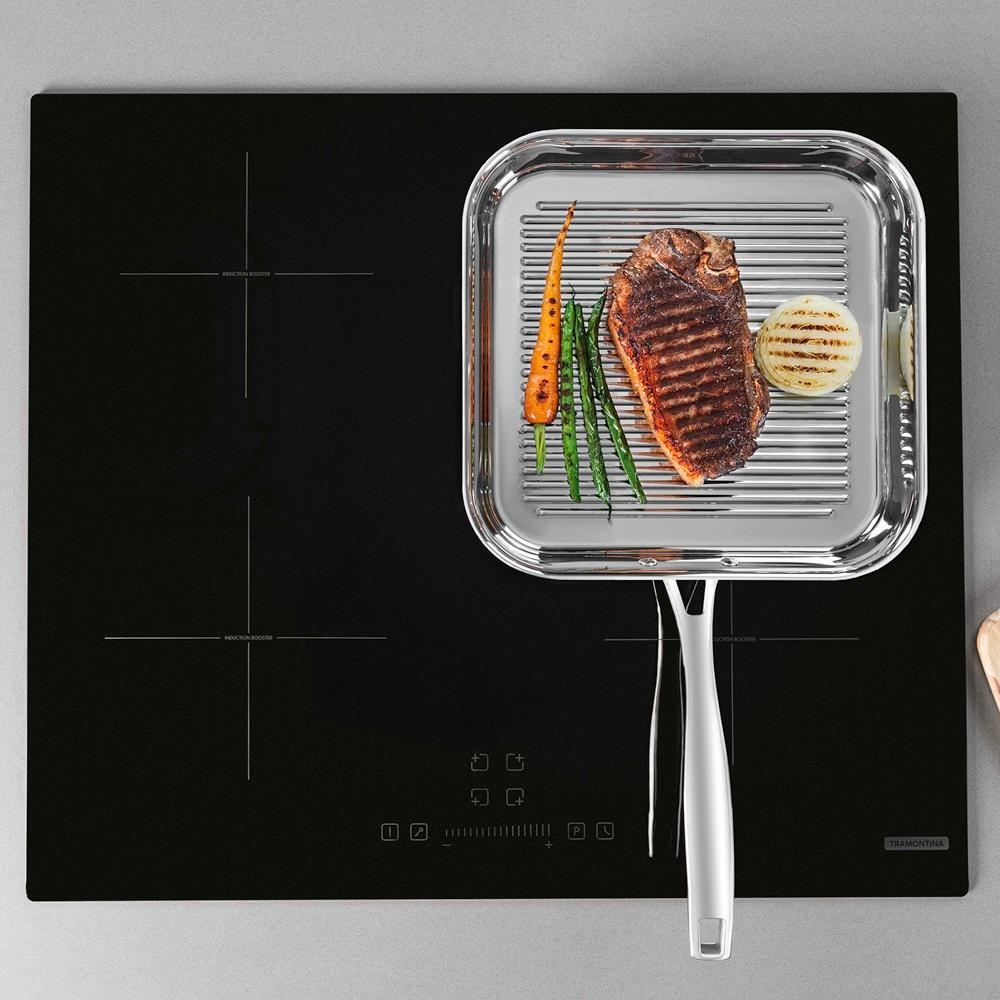 Your dishes will level up with Tramontina's Grano 1.9L stainless steel griddle pan. For versatile cooking, it is perfect for grilling your best meat, fish and vegetable dishes. It is also impressive due to its functionality. This griddle pan can go in the oven to brown or finish dishes and can be used on different types of cooktops. Made of highly durable stainless steel with tri-ply body (stainless steel + aluminium + stainless steel) technology. This characteristic distributes heat evenly for faster and more efficient cooking. It also keeps your food warm for longer. The contemporary design makes it a great choice for serving at the table. This product is also very easy to clean and dishwasher safe.