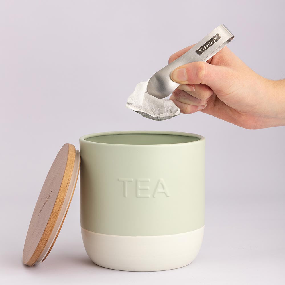 Ideal for organizing your kitchen pantry or countertop, this canister not only keeps tea neatly stored but also enhances your kitchen decor with its stylish design. Whether you're a tea aficionado or simply appreciate quality kitchen essentials, Typhoon Living delivers reliability and sustainability.