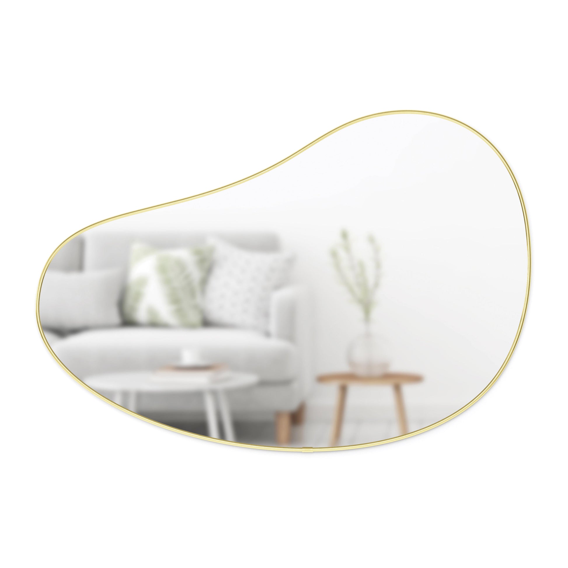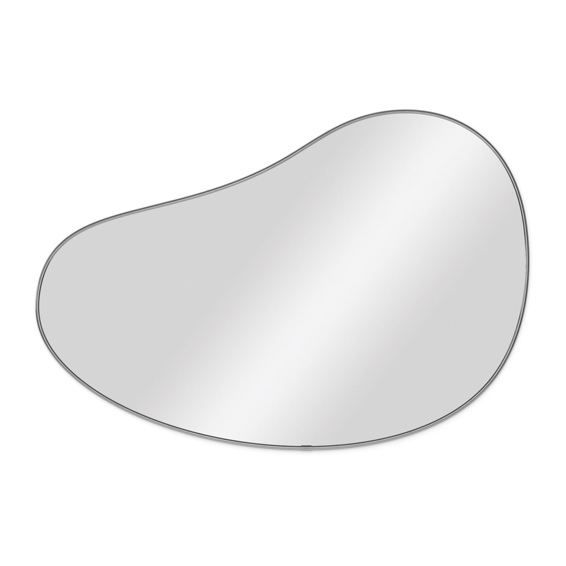 The unique, organic-shaped Umbra Hubba Pebble Mirror is a new addition to our Hubba Family. It's specially designed keyhole mounting bracket allows Pebble to be hung in 8 different ways to best suit your space. This playful mirror makes a perfect addition to a variety of spaces in the home - from entryway to bathrooms, playrooms and more. It measures 60 x 91cm and has a thin, decorative metallic frame.