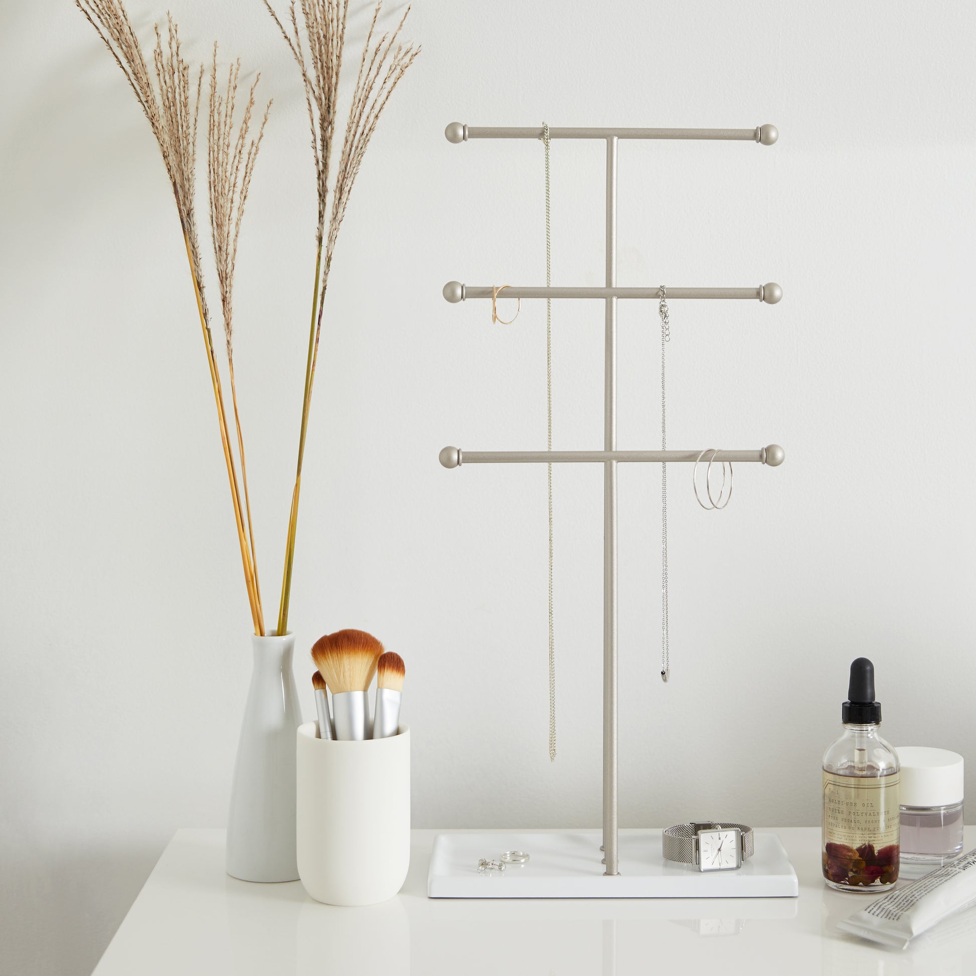 • Trigem’s three-tier design allows you to store and display multiple accessories, all on one convenient organiser• Trigem is an ideal necklace holder for extra-long necklaces, ensuring everything stays tangle-free