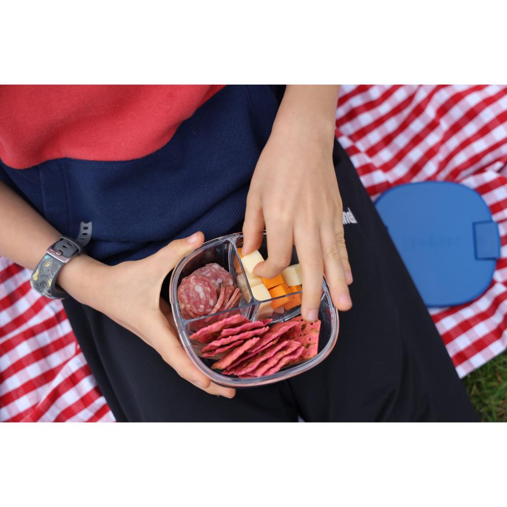 The Yumbox 3 compartment snack bowl 384ml is the perfect solution for organising and packing a variety of snacks in a single, compact bowl. Designed for kids, this snack bowl features three separate compartments, making it easy to pack different snacks like fruits, crackers, veggies, or small sandwiches without mixing them together. The leakproof design ensures that any dips or sauces stay securely contained, preventing spills and messes. Made from BPA-free, food-safe materials, this Tritan™ snack bowl is both durable and safe for everyday use. its compact, lightweight, and portable design makes it ideal for school, outings, or on-the-go snacks. The easy-to-clean bowl is dishwasher safe, offering quick and convenient cleaning. with its vibrant colours, the Yumbox 3 compartment snack bowl makes snack time organised, enjoyable, and mess-free, while keeping your food fresh and ready to eat.